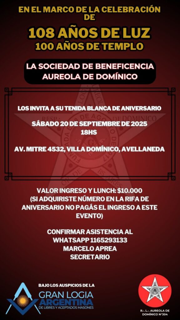 La ciudad de Villa Domínico cuenta con un templo histórico de la Logia Masónica Aureola de Domínico Nº 304, que este año cumple 108 años de existencia y cuyo templo, ubicado en Mitre al 4500, celebra nada menos que 100 años de historia. Con motivo de este aniversario, la institución abrirá sus puertas a los vecinos en una jornada denominada tenida blanca, un hecho poco común que permite al público conocer de cerca sus tradiciones.
