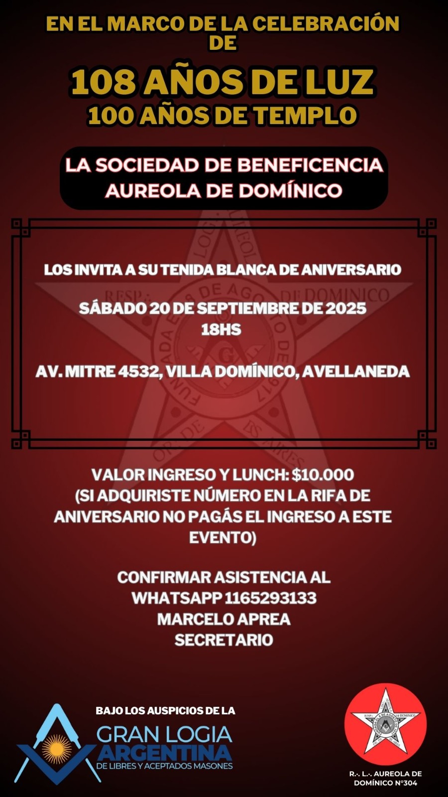 La ciudad de Villa Domínico cuenta con un templo histórico de la Logia Masónica Aureola de Domínico Nº 304, que este año cumple 108 años de existencia y cuyo templo, ubicado en Mitre al 4500, celebra nada menos que 100 años de historia. Con motivo de este aniversario, la institución abrirá sus puertas a los vecinos en una jornada denominada tenida blanca, un hecho poco común que permite al público conocer de cerca sus tradiciones.