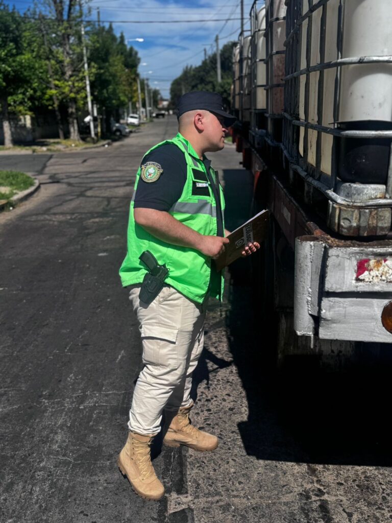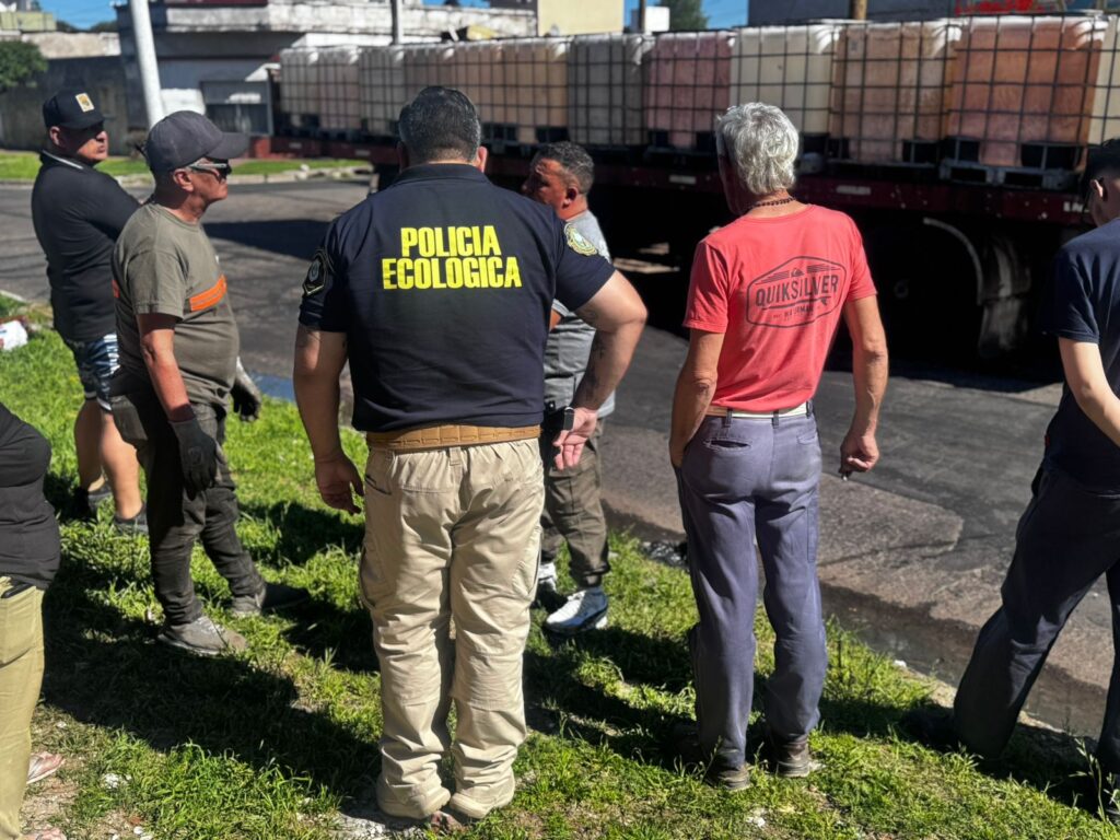 De acuerdo con el informe oficial, en el lugar se constató la presencia de un semirremolque con contenedores plásticos de 1000 litros (conocidos como “bines”), que habrían sido lavados en la vía pública, generando el derrame de líquidos con restos de aceite vegetal hacia un pluvial.